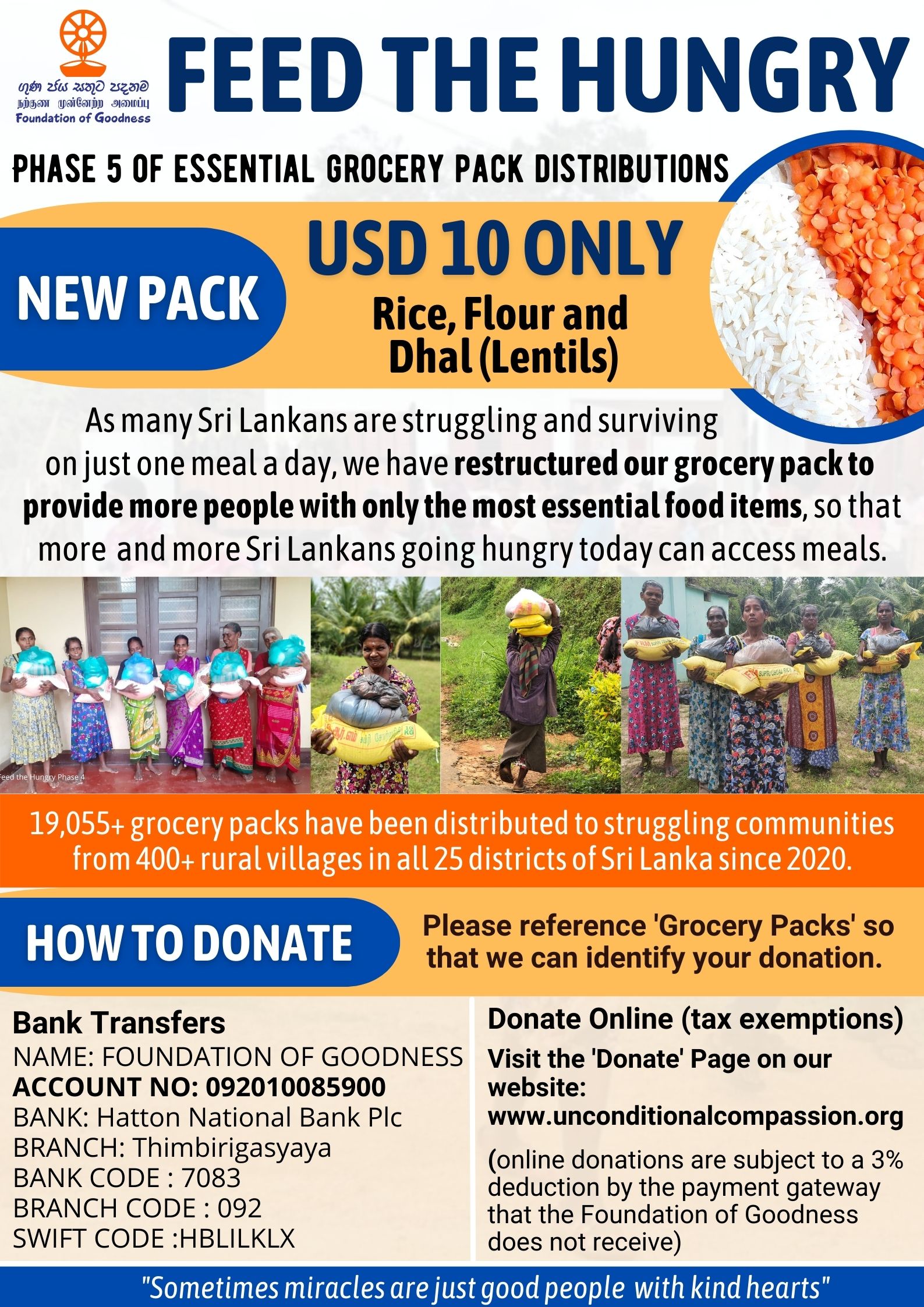 The Feed the Hungry project has supplied essential grocery packs to over 23,000 deserving beneficiaries from 495+ villages in all 25 districts in Sri Lanka! We hope to continue to help those in need, with the economic crisis making many families go without meals here in Sri Lanka.