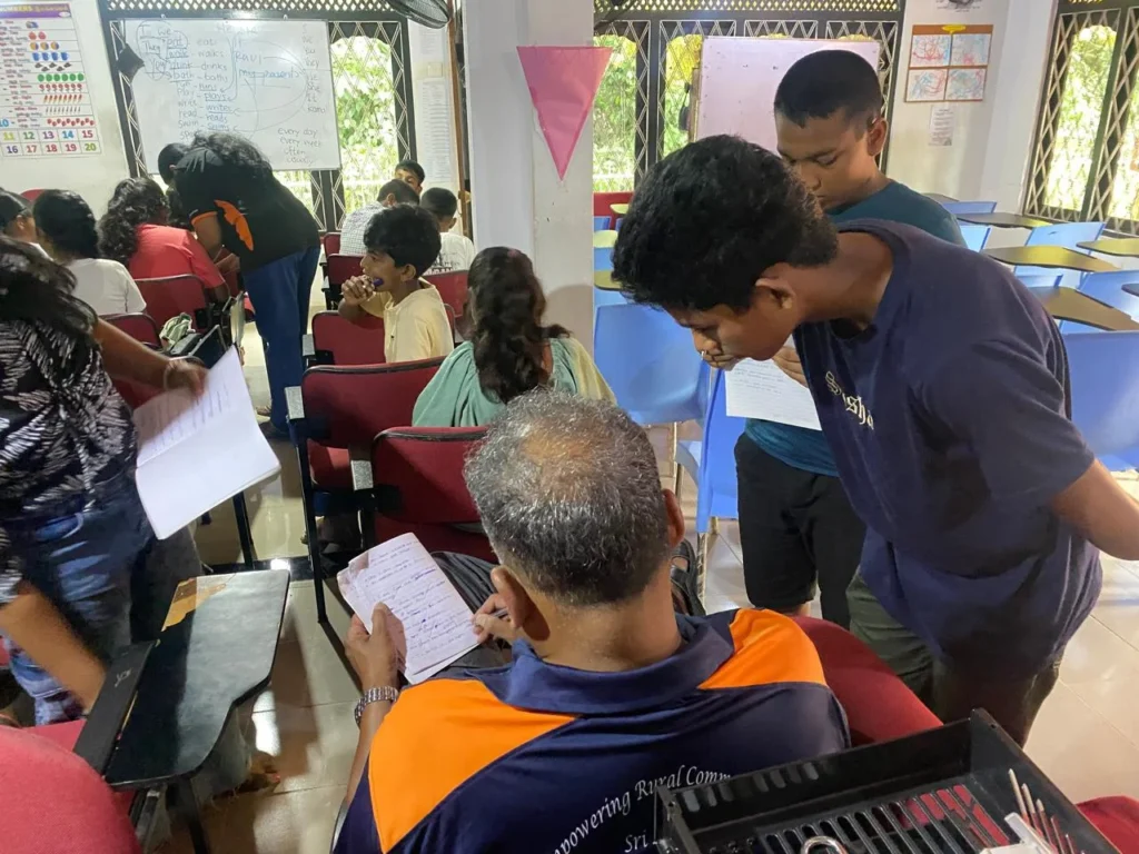 Between mid-2025 and early 2026, Tino Selvadurai generously volunteered to conduct a series of engaging English workshops across our Village Heartbeat Empowerment (VHE) Centres, as well as at the Centre of Excellence in Seenigama. Through his dedication, he brought valuable learning opportunities to underserved communities across Sri Lanka, sparking curiosity, building confidence, and opening doors for students to connect with the world through language.