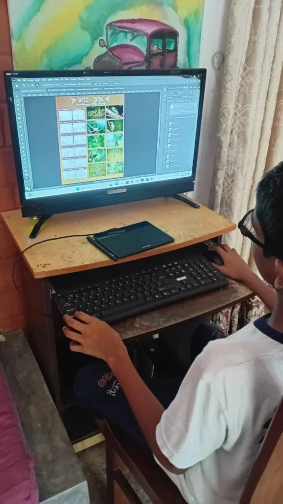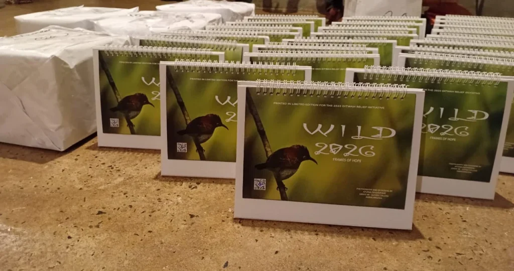 Determined not to let this stop him, Apurva found another way to make a difference. Having joined the Centre of Excellence in Seenigama just three months ago to learn photography, he drew on his growing passion for wildlife photography and a collection of photographs he had taken. His interest in photography was inspired by his father, who pursues it as a hobby. He then decided to turn his creativity into action by designing and launching a 2026 desk calendar, “Wild 2026: Frames of Hope.”
