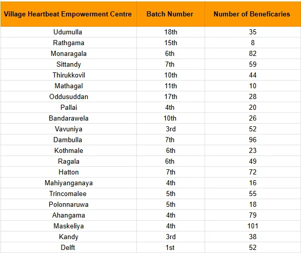 Our centres offer a wide range of free vocational and skill-development programmes, including language courses, computer and IT training, culinary and hospitality skills, and creative and vocational courses such as dressmaking and pattern making. Among these, Dressmaking, Computer Training, English, Tamil and Sinhala language courses, and Cookery-related programmes remain some of the most popular. Many students also choose to enroll in more than one course, allowing them to broaden their skills and make the most of the learning opportunities available at our centres. These courses provide a strong foundation and an exciting start to their journey, opening doors to new opportunities, confidence, and a brighter future.